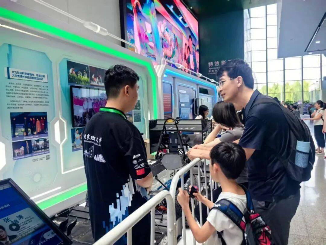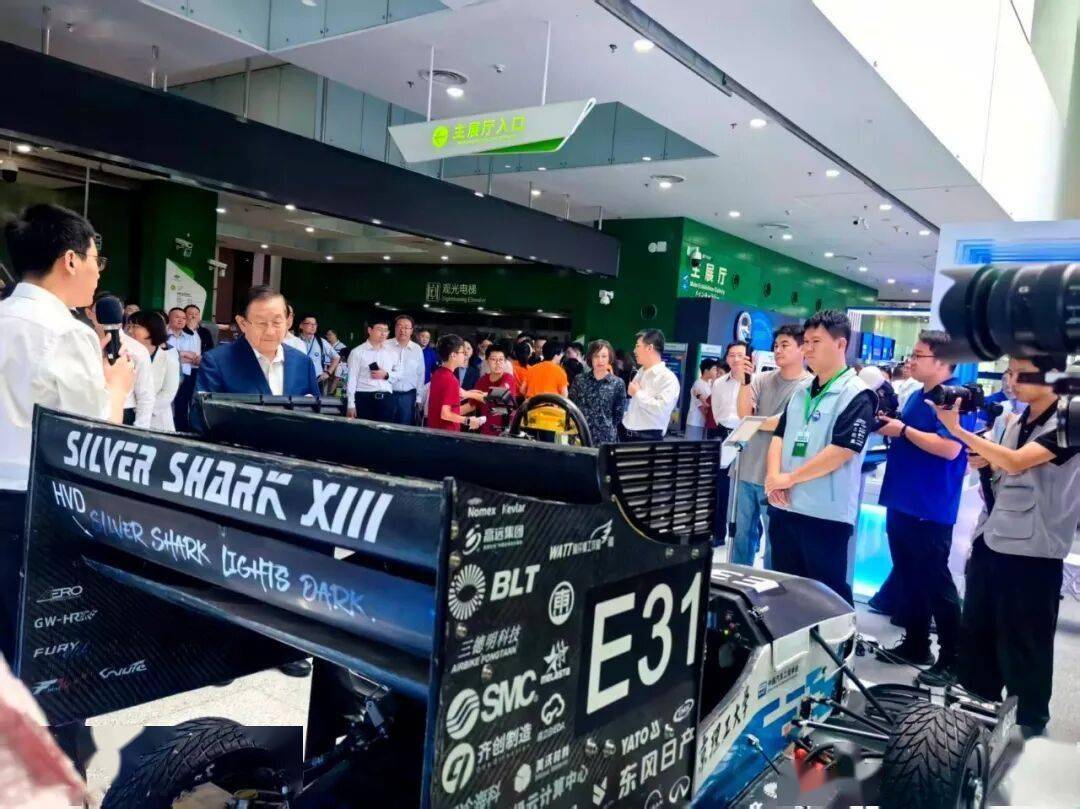 “银鲨XIII”电动方程式赛车是北京理工大学学生团队独立自主设计制造的“硬核作品”。它藏着不少厉害的技术亮点:车身搭载了轮边四电机,配合团队自主研发的车辆动力学控制算法和电池管理系统,能让赛车跑得更稳、动力输出更智能;车身采用轻量化复合材料,底盘则通过3D打印拓扑优化技术打造,在保证强度的同时大大减轻了重量。凭借这些出色的设计与技术,这辆学生自主研发的赛车在2024年中国大学生电动方程式大赛中表现亮眼并取得不俗成绩。在“银鲨XIII”电动方程式赛车展示区域,涌动着浓厚的科技探索热情,观众们纷纷驻足在“银鲨XIII”赛车旁,近距离观察其流畅的车身线条、精密的动力系统部件,不时发出“这赛车太酷了”,“这电动动力能支撑这么强的性能,太厉害”的赞叹,不少观众还拿出手机拍摄细节,想要记录下这电动赛车的硬核实力。